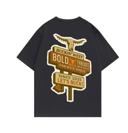 Featuring original Buckin’ West artwork — bold, gritty and unapologetically Aussie — this design sits loud and proud on the back, just the way it should. Whether you’re leaning on the tray with your mates or two-stepping under the stars, this tee’s built to go the distance.